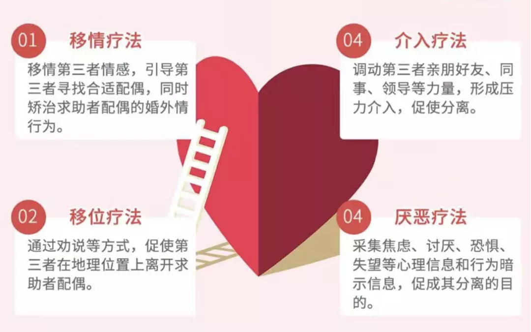 服務團隊會根據不同的第三者類型,制定小三勸退方案,因材施教,對症下藥。