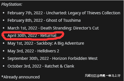 然而,在今天的這份名單中,依然出現了前文提到的《Returnal》的名字。