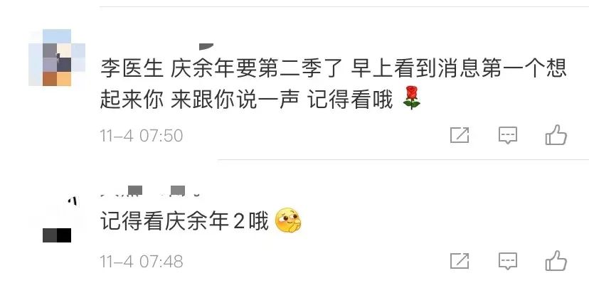 真正令我感動的是,這份願望,快2年過去了,卻一直被所有人記着,無人忘記,你看,當慶餘年2官宣開拍時,大家都紛紛跑過來告訴他。這是一個幾百萬人、幾千萬人替一個逝者守護願望的故事,這份故事還會再延續很多年,在我看來,這份故事本身,就已經像童話一樣打動人了,而它是真實發生的。