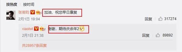當時張若昀去他微博下打氣,祝他早日康復。