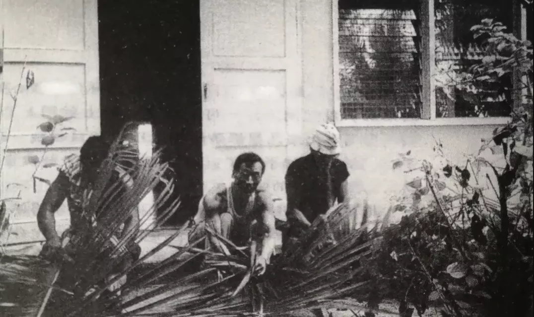1990年3月,使館的籬笆倒了,吳鍾華向當地人學編籬笆,生產自救。