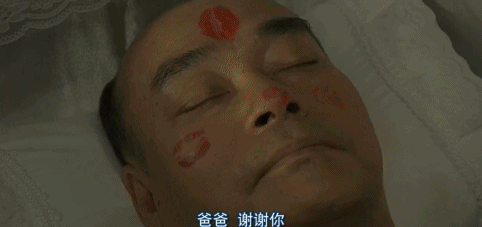 一家之主逝去,女家屬們依次在他臉上印上大紅唇印: