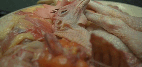 但看着雞還微張的眼皮,大悟想到的不是香噴噴的食物,而是屍體。