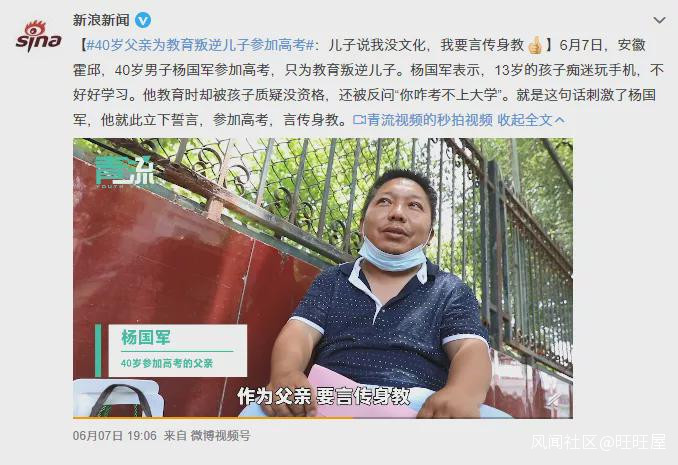 在今年高考裏,安徽一考場驚現一名40歲的高齡考生。他在不惑之年參加高考,不是為了圓自己的大學夢,而是為了教育叛逆期的兒子。兒子沉迷手機,不願意好好學習,對此,他打也打過,罵也罵過,但都不管用。對於他的説教,兒子很不服氣:你有能力你去考,你怎麼考不上大學?這句話,讓他深深受到了刺激,於是他立誓參加高考,給兒子言傳身教的教育。