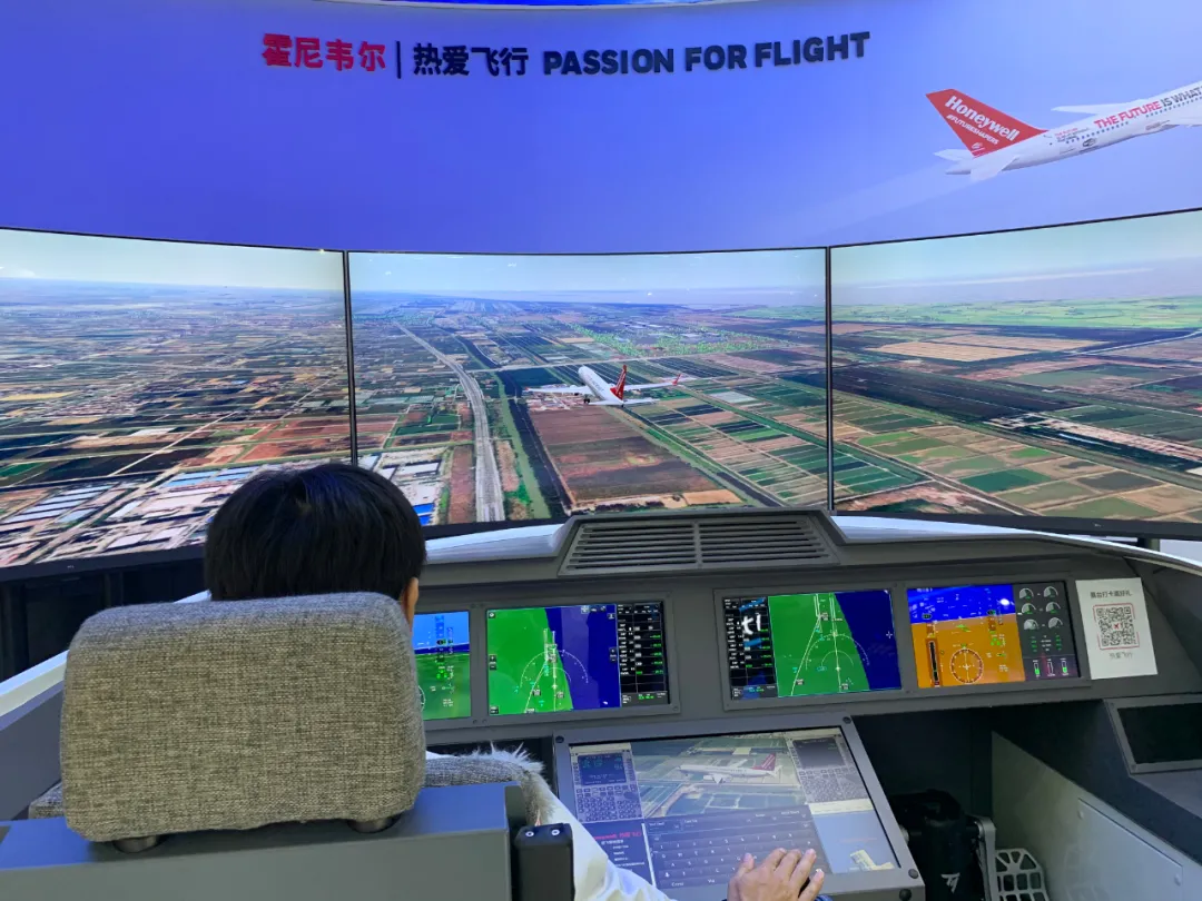 工作人員展示霍尼韋爾飛行模擬器。拍攝:點蒼