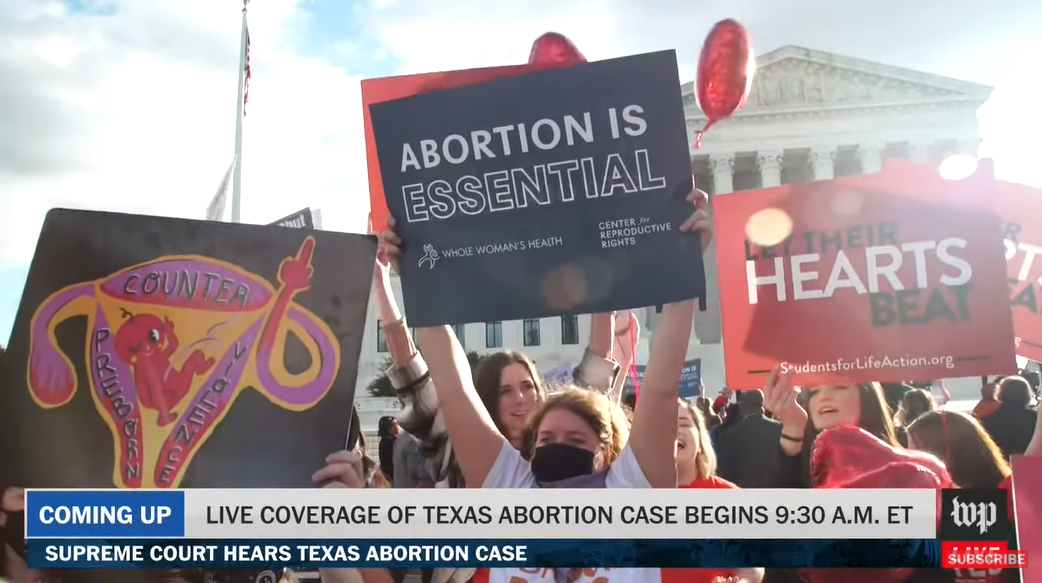 ● 11月1日最高法院針對墮胎法案進行的辯論現場 / 華盛頓郵報直播視頻截圖