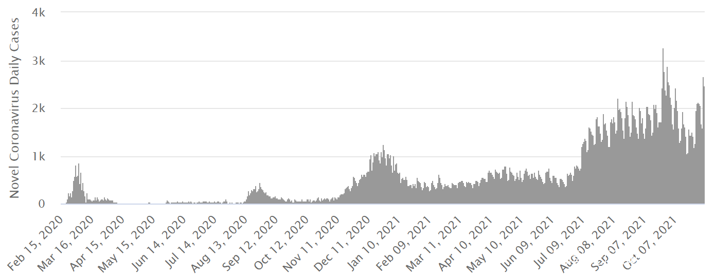 新加坡單日新增確診病例(2020.02.15-2021.11.04**)**