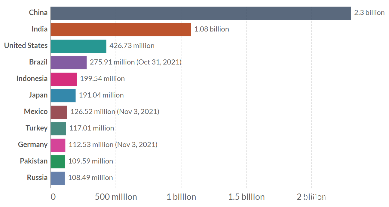巴西、印尼、日本、墨西哥、土耳其、德國、巴基斯坦分列四到十位。