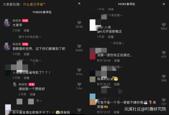 在兩支視頻評論區可以看到,有網友説見證了一個大V的誕生,也有網友説這就是元宇宙,還有絕了絕了。
