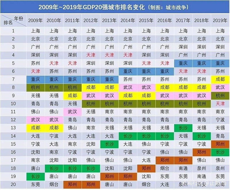 從2011年起,鄭州GDP在全國的排名幾乎是2年一個台階向上發展