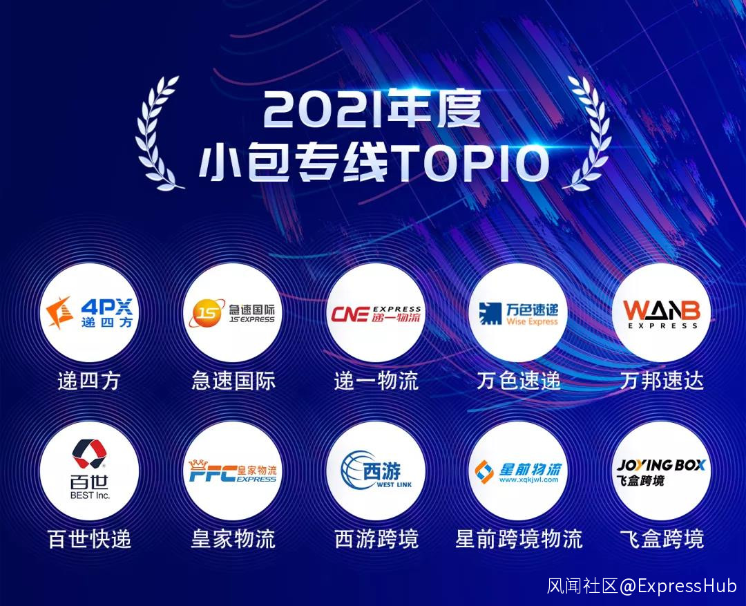 2021年度小包專線TOP10: 急速國際、遞一物流、萬色速遞、萬邦速達、百世快遞、皇家物流、西遊跨境、飛盒跨境、遞四方、星前跨境物流