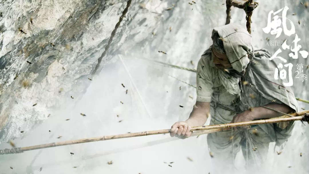 2年後的《風味人間》他同樣拍了採蜂蜜,這次就是在懸崖上拍了。