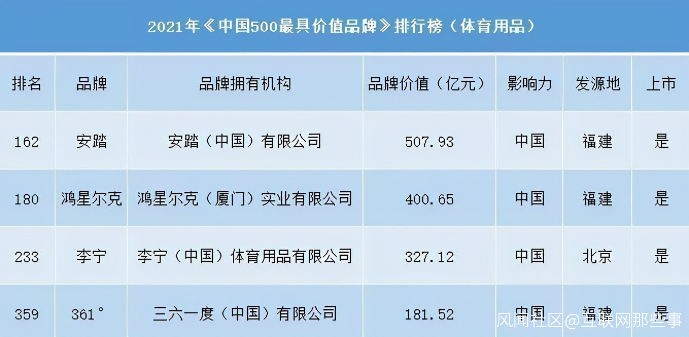 也未必,在2021年《中國500最具價值品牌》排行榜中,純體育用品賽道,鴻星爾克憑400億的品牌價值力壓327億的李寧一頭,排名國貨品牌第二,僅次於安踏,這大抵也算得上,2021年以來,鴻星爾克為數不多的憑實力掙來的輝煌勳章。