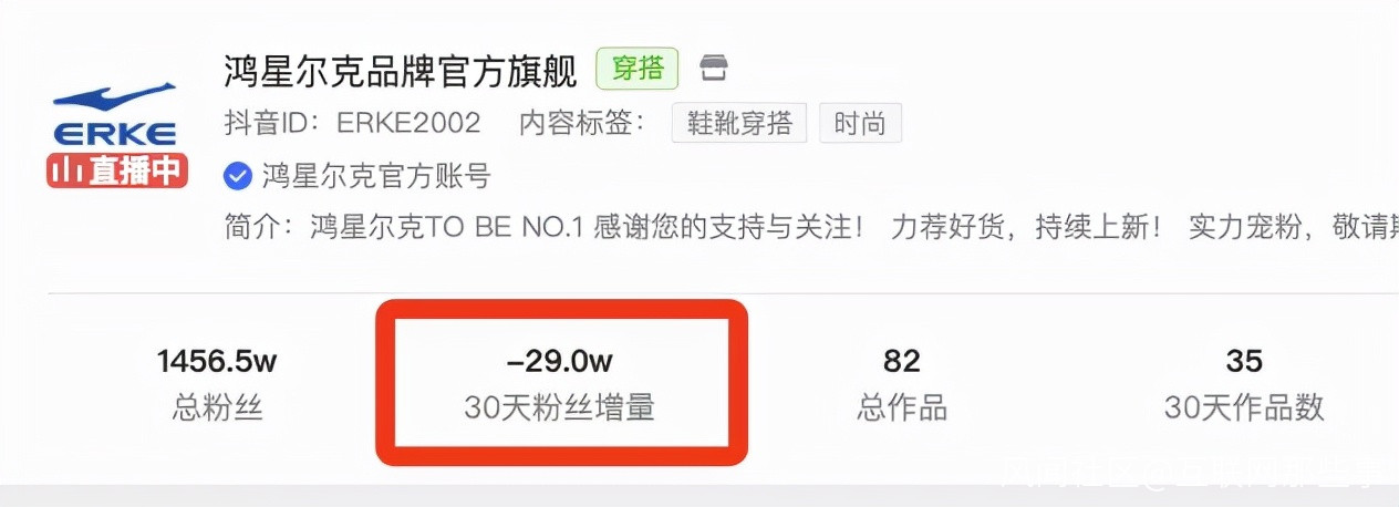 7月份時,鴻星爾克官方賬號以1500萬的天文級漲粉,強勢斬獲主播漲粉第一名,成為抖音平台最大黑馬,如今,鴻星爾克卻在以每天約1萬粉絲的速度在掉粉,而鴻星爾克董事長吳榮照的賬號在近30天內,也狂掉21萬粉。