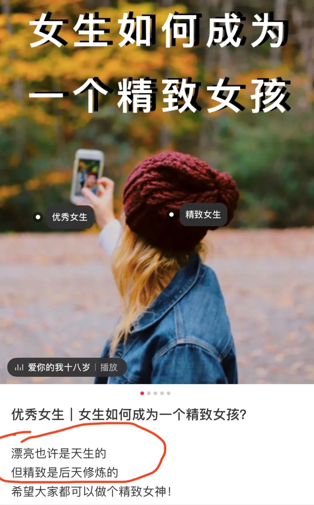 繼“減肥”之後,**“精緻”**變成了年輕女孩子的另一個普世標準。比起漂不漂亮,精緻與否被認為是“可以通過努力達到”“代表了一種認真生活的態度”“表現了女生對自己高自我要求和優秀”“追求精緻是上進和變成更好的自己的表現”。