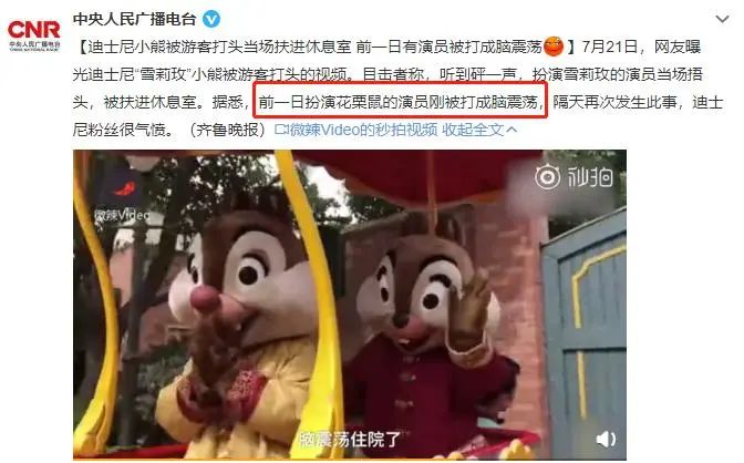 此前,迪士尼的花栗鼠“蒂蒂”被拍打頭部,NPC演員被診斷出輕微腦震盪。