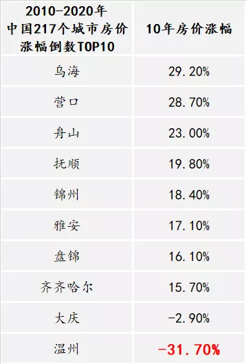 10年後的今天,温州又成了全國唯一一座房價真正跌過的城市