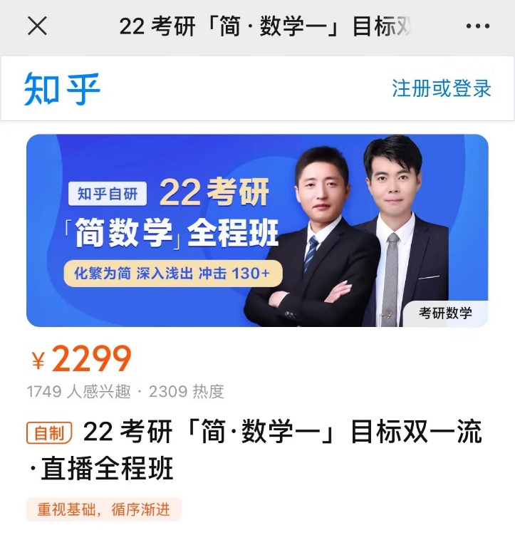 事實上,雖然業務收入佔比不大,但知乎一直在加碼教育業務。今年年初,知乎上線考研課程“22考研小白偷跑計劃”,包括擇校、擇專業、政治、英語、數學的複習規劃,均為其自研課程。