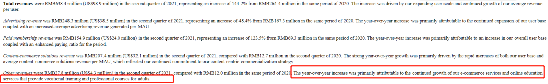 從年初開始,知乎就在成人職教上連下數子。到第二季度,包含在線教育服務和電商業務的其他業務收入同比大漲130.9%。
