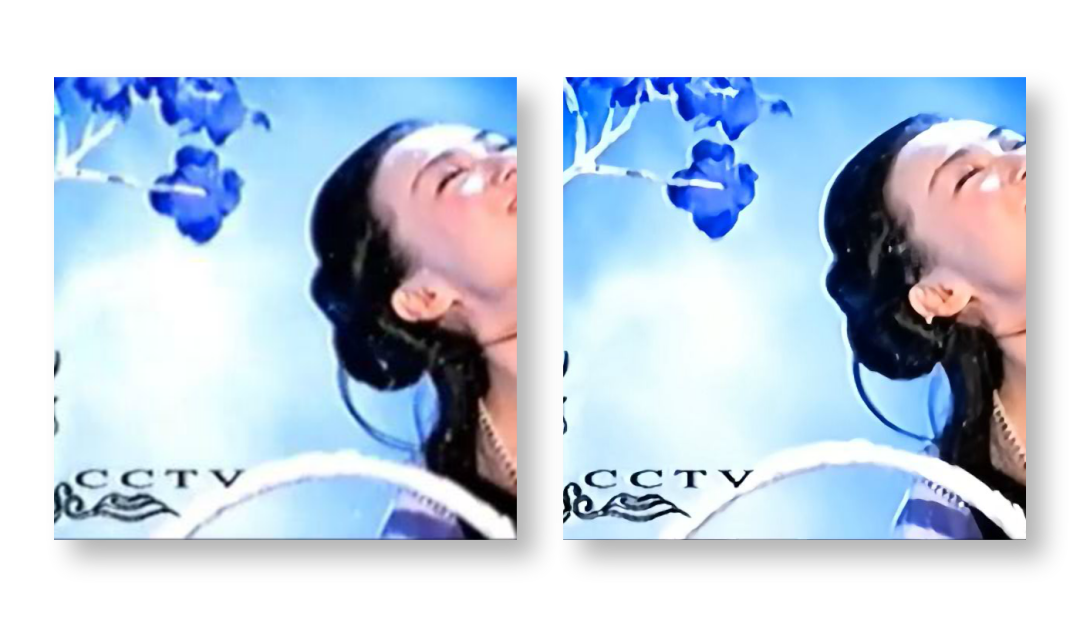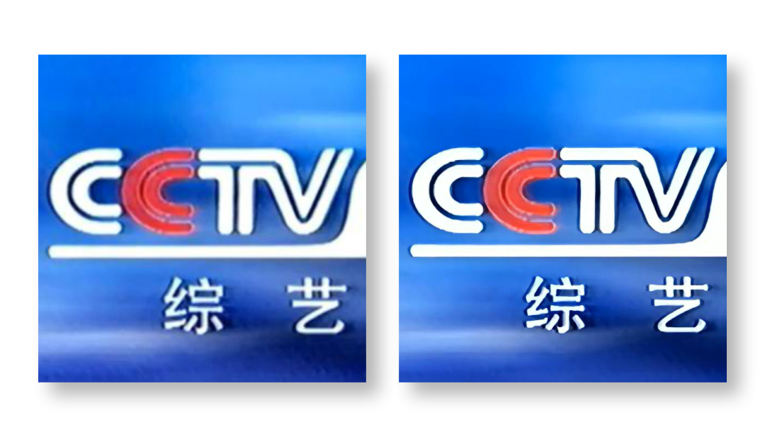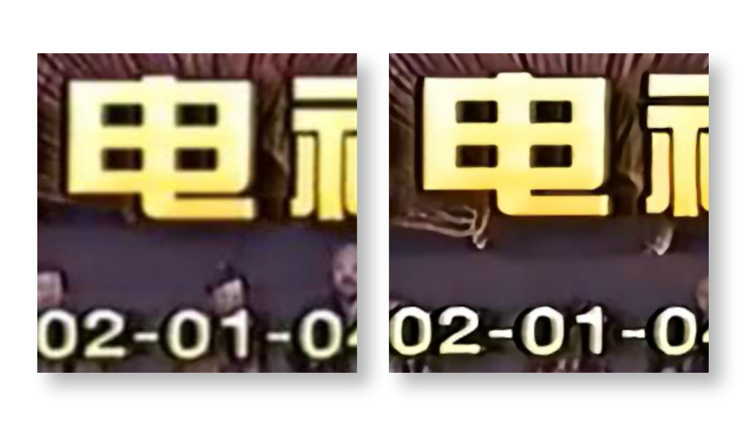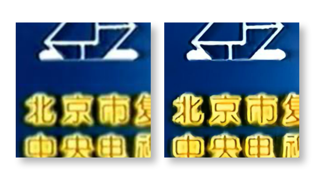 用電視畫面來測試的另一個優勢在於,它是二維線條圖形和現場實拍畫面的結合。實際上,在我們接下來的測試中,這種對照充分體現出了西瓜這個修復算法的特性——相對攝像機拍攝的現場畫面和人像,它對人造圖形的還原能力更強。