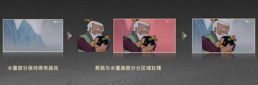 在《葫蘆兄弟》中,算法對前景的葫蘆娃剪紙區域提升清晰度,對背景的水墨畫區域保持朦朧感。這種對內容的自適應處理,根據不同區域分片處理,很好地保持了原有畫風。