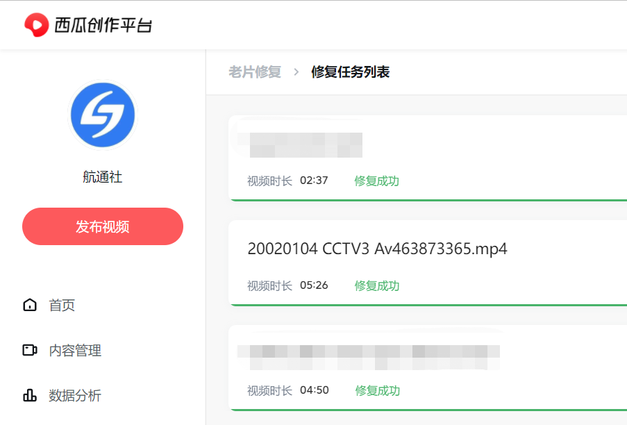 會上還宣佈開放入口,為普通用户免費提供 AI 修復支持。目前這一功能已經在西瓜視頻創作後台向全體用户開放,普通用户每天可上傳 5 段、每段不超過 30 分鐘的低清晰度視頻,在雲端進行高清修復。