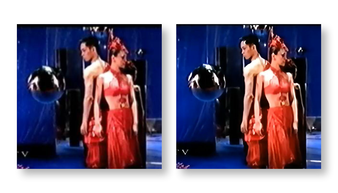 以下,就讓我們通過一組轉換前後的對比截圖,來感受火山引擎這套高清修復算法的能力以及其實際效果。