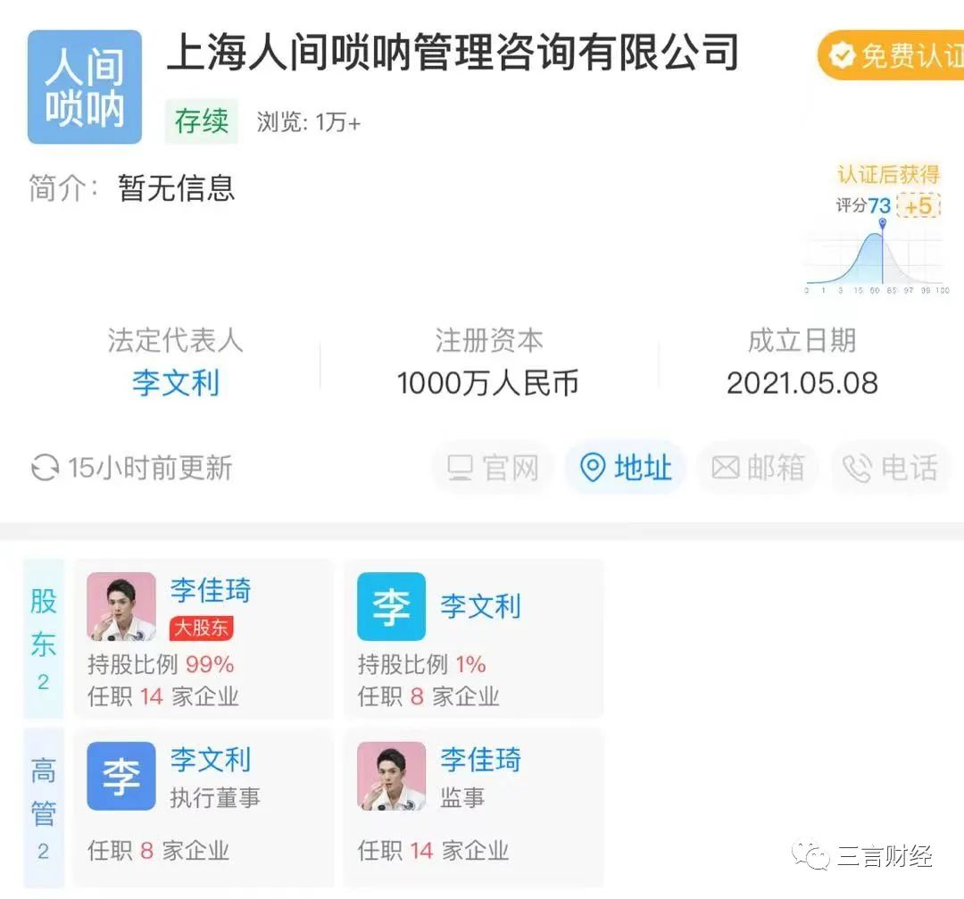 而李佳琦方面則明顯自由很多,一邊要努力帶貨創造銷售佳績,但與此同時李佳琦也成立了多家自己控股近100%的公司,從表面上看跟美腕關係不大。