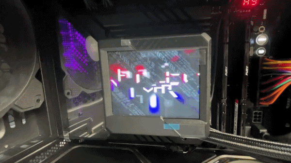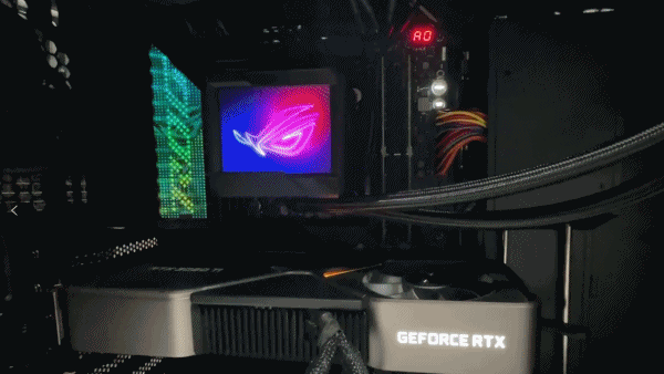 值得一提的是, Rog 情誼贊助的這套一體水冷組件是真的讓人毫無抵抗力,冷頭上搭載的顯示屏,可以在設置中自定義動畫,悶騷的很。