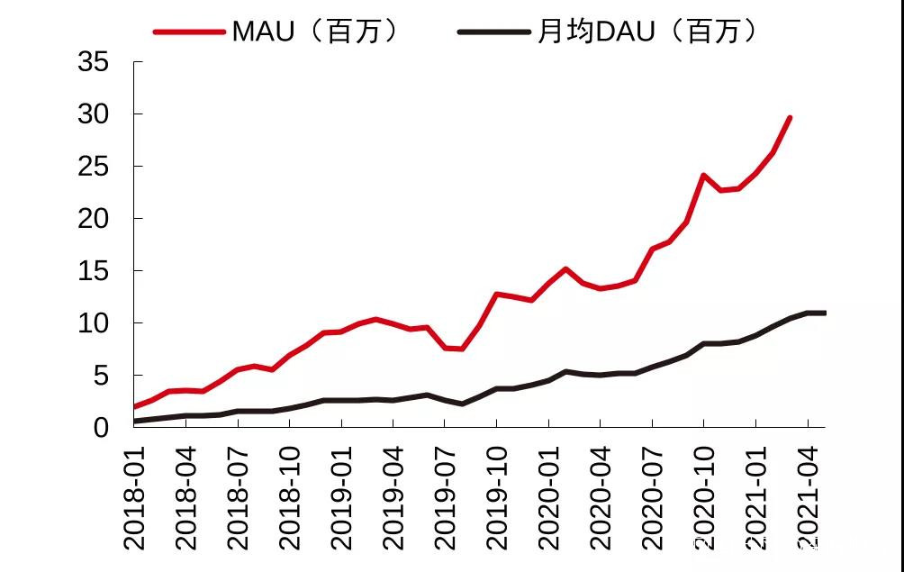 直至2021年3月,其DAU、MAU分別漲至910萬、3320萬,同比增速高達94.4%、109.0%,3月增速相比去年呈誇張的上升態勢。值得注意的是,DAU中90後用户佔比達73.9%,而這也是該APP最引以為傲的營銷重點。