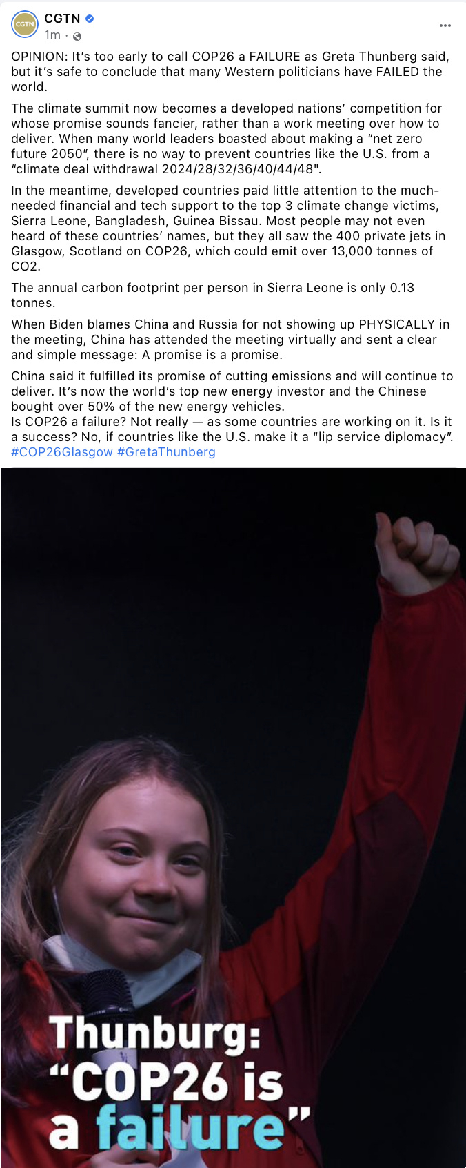環保少女説COP26氣候峯會“失敗”了,其實準確地説,是美西方那一套失敗了_風聞