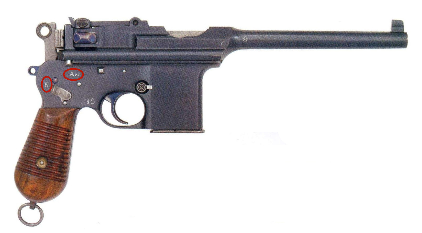 與毛瑟手槍不同、與皇家系列也不同的是,它的快慢機在槍身的右側,而不是毛瑟手槍、皇家手槍那樣置於槍身的左側,其單、連發標識亦不是毛瑟的N與R,而是“1”與“10”,當快慢機撥向“1”時為單發,撥向“10”時為連發。
