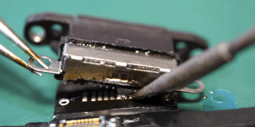 上面這個 Gif 來源於油管博主 Kenny Pi 的視頻,他耗時半年左右,成功的把一台 iPhone X 的 Lightning 充電接口換成了 Type - C 接口。