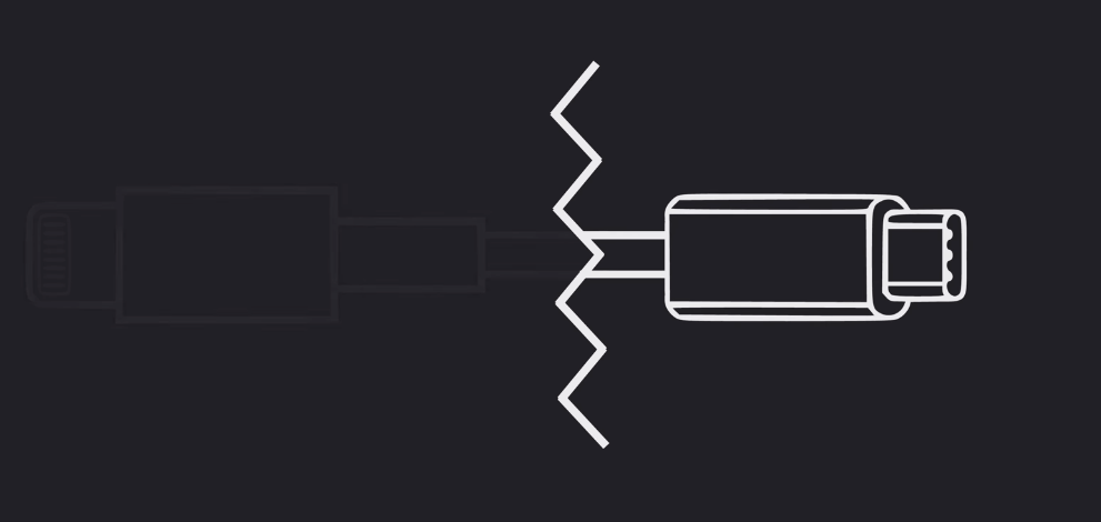 比如這根 C to Lightning 的線,你不可能像圖裏那樣,直接把這樣一根線塞進 iPhone 裏。