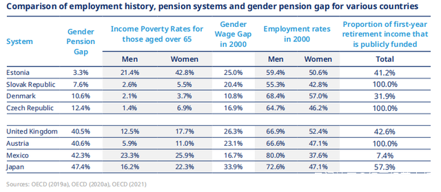 美世諮詢公司發佈的2021年全球養老金指數報告顯示,日本女性退休後的養老金水平比男性低47.4%,這讓日本成為養老金水平性別差異最大的國家。雖然養老金水平差異的現象普遍存在,但是在調查中排名最末的的愛沙尼亞,差異僅有3.3%。