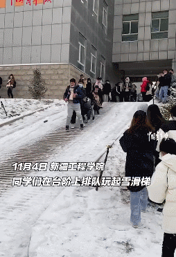最先迎來降雪的新疆,高校學子們玩到了季節限定“雪滑梯”,把隔壁的南方人都饞哭了。