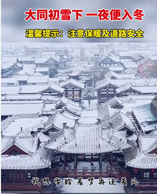 同樣迎來降雪的山西大同,雪景美不勝收,有網友説:“一下雪,大同就變成了平城”。