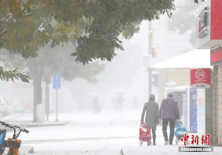 圖為11月6日,寧夏銀川,市民雪中出行。於晶 攝