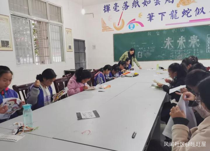 書法社團的同學們在認真書寫漢字,相信他們一定能寫出一手好字。