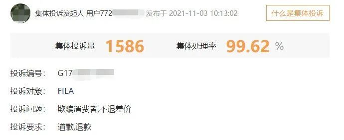 與匡威有着同樣套路的還有FILA(斐樂)官方旗艦店。11月4日,黑貓投訴平台出現有關FILA預售欺騙消費者的集體投訴。