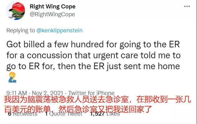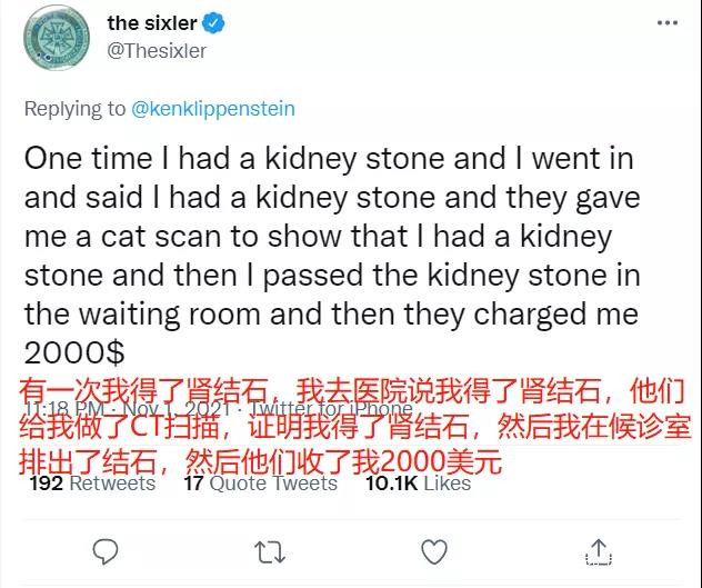 美國一個小姐姐最近在推特上分享了自己在美國看急診的經歷:在急診大廳裏白白等了7個小時,什麼都沒幹,然後就收到一張醫院700美元的賬單……