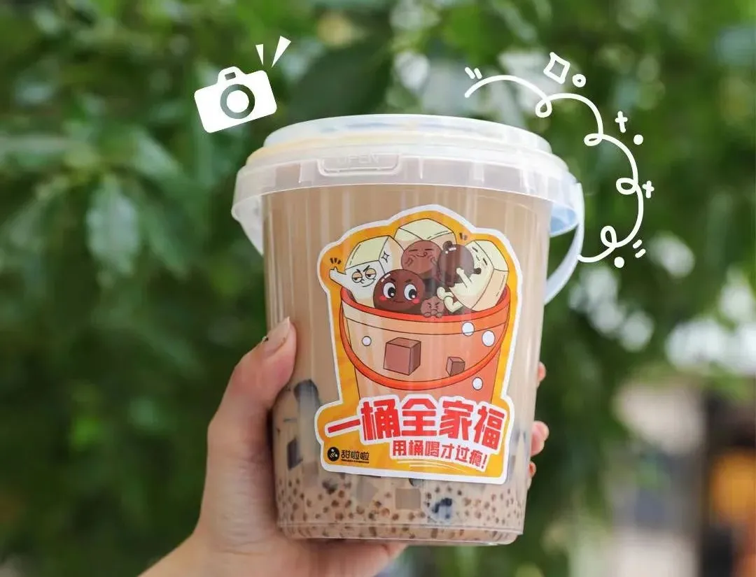 進入秋冬,“大桶裝”的形式蔓延到奶茶裏。大桶裝奶茶是在桶中添加多款小料,依舊以種類豐富、高性價比為賣點。