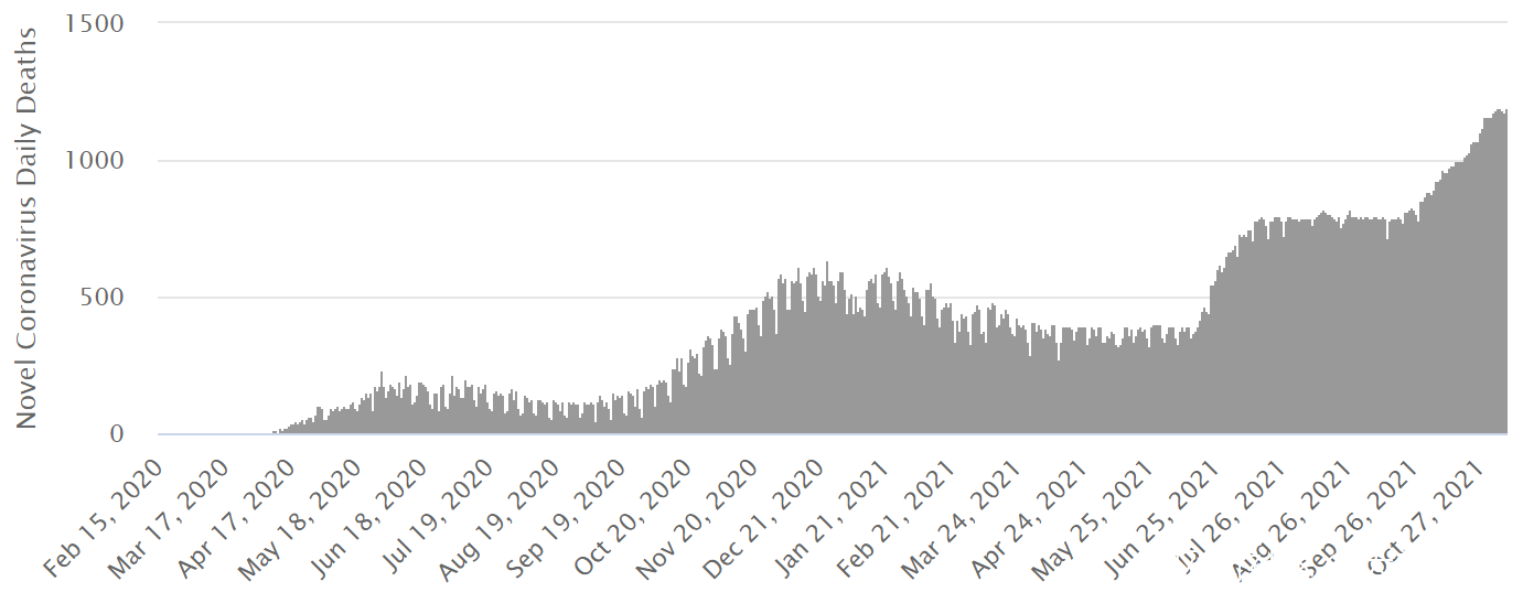 俄羅斯單日新增死亡病例(2020.02.15-2021.11.08**)**