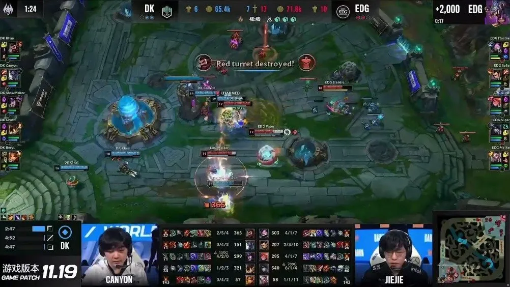 熟悉《英雄聯盟》賽事歷史的玩家都知道,這次S11的冠軍總決賽敵我力量對比懸殊,觀眾在賽前不論國籍,幾乎都覺得來自世界最強賽區LCK(League Of Legends Champions Korea,英雄聯盟韓國冠軍聯賽,簡稱LCK)的DK戰隊應當贏得毫無懸念,會以衞冕冠軍之姿續寫傳奇。而EDG俱樂部,作為曾揹負盛譽與希望的最早一批英雄聯盟電競俱樂部,少年成名後逐漸在浪潮之中消散光芒,一如場下不少已經步入而立之年的觀眾。