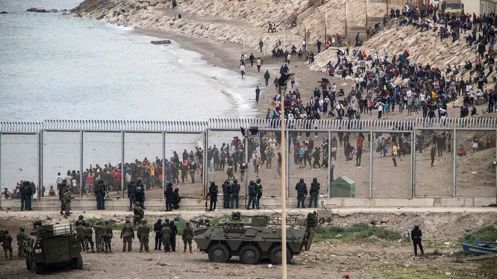 ● 摩洛哥領土與休達的邊境線上聚集的難民人潮 / 網絡