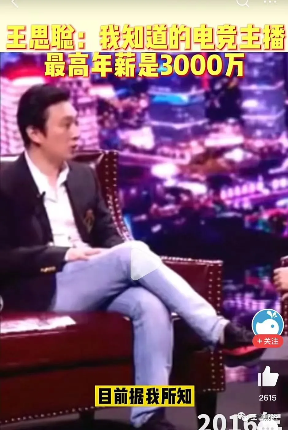 王思聰也曾在訪談中提到,據他所知,電競主播最高年薪是3000萬。