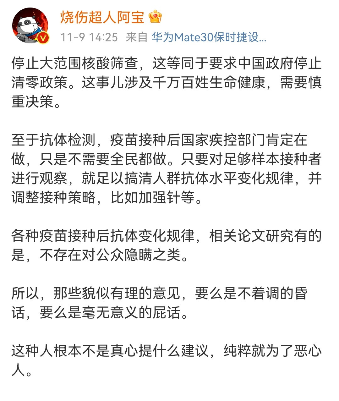停止大範圍核酸篩查,這等同於要求中國政府停止清零政策。這事兒涉及千萬百姓生命健康,需要慎重決策。