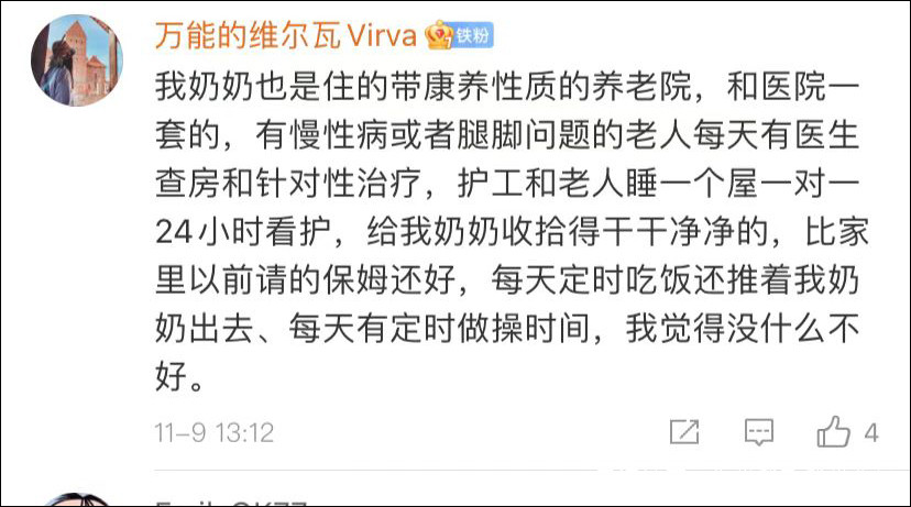這些養老院都在做非常好非常紮實的工作,踏踏實實讓老人過上幸福晚年。不應該為了生育率問題,故意抹黑所有養老院。