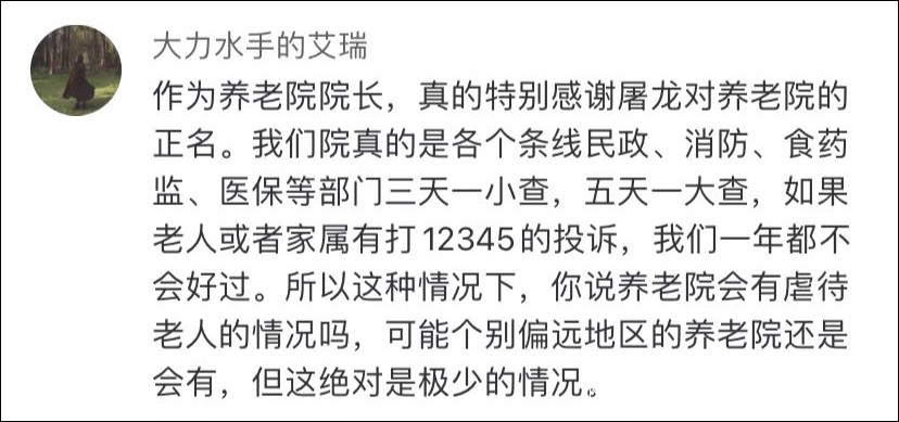 有養老院院長現身説法:院裏三天一小查,五天一大查,如果老人或家屬有打12345投訴,我們一年都不會好過。