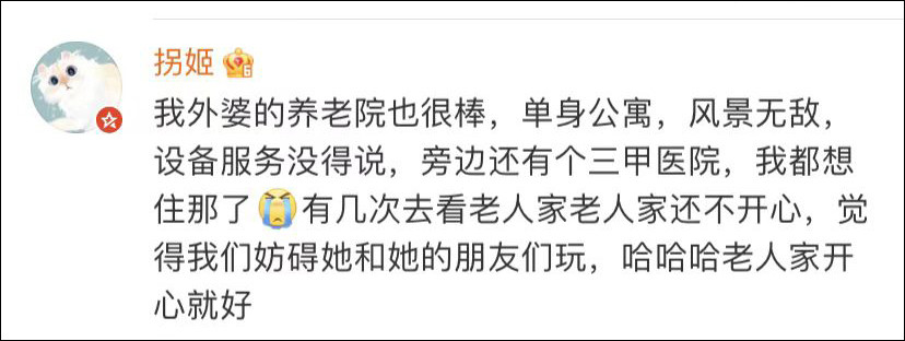 有不少網友紛紛表示,自家老人住的養老院就很棒。